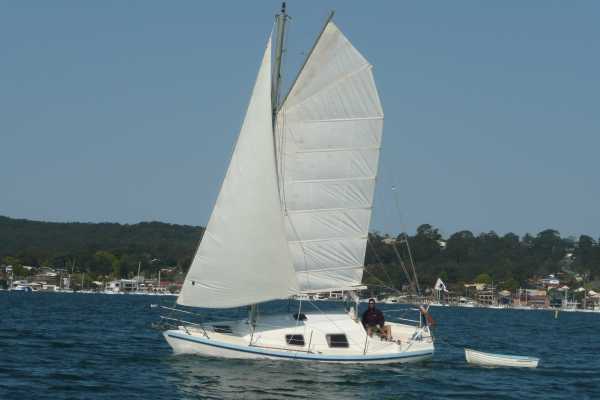Blue Moon, Top Hat 25 MkIII, Modified Junk Rig (Junkette Rig), sailing on Lake Macquarie