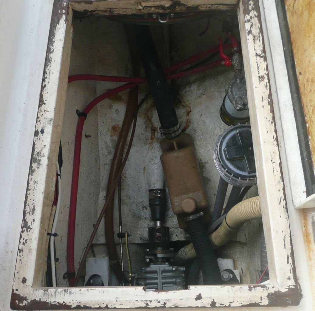 Hopefully here is a link to the photo in the gallery showing the access hatch in the cockpit sole. It was installed by the previous owner when he got the wheel steering installed. Diesel mechanics like working on it as it gives great access to the stern gland etc.